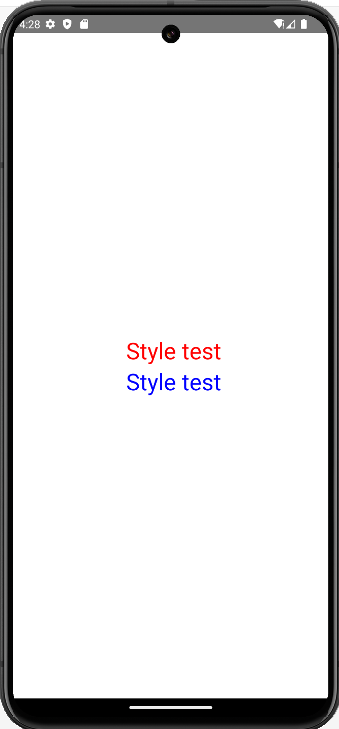 <Text style={{fontSize: 30, color: 'blue'}}> Style test</Text>