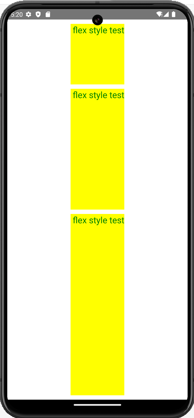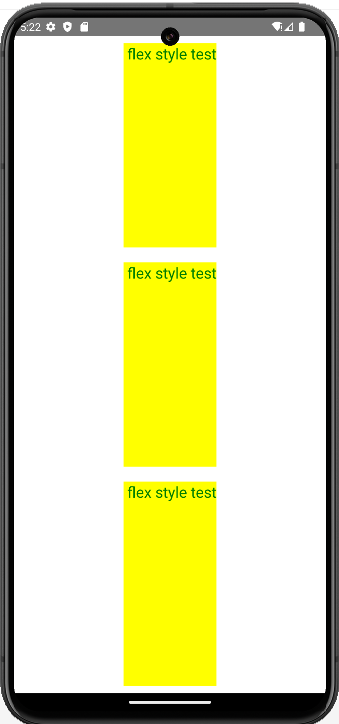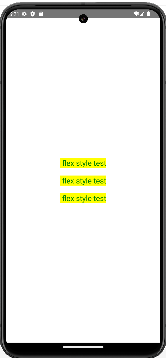 위의 예제를 보면 3개의 Text 컴포넌트가 각각 flex 스타일을 1을 가지는 경우 3분의 1 씩 화면을 차지하게 되는 것을 알 수 있다. 여기서 text별로스타일을 지정하여 가각 flex를 1,2,3을 지정하게 되면 6 등분하여 첫 텍스트는 6분의 1만큼을 차지하고 2번째 텍스트는 3분의 1을 차지하고 나머지 세 번째 텍스트트 2분의 1을 차지하게 될 것이다, 해당 부분은 flex 스타일에 대한 깊은 이해를 위해 아래에 추가적으로 예제를 작성해 보도록 하겠다.