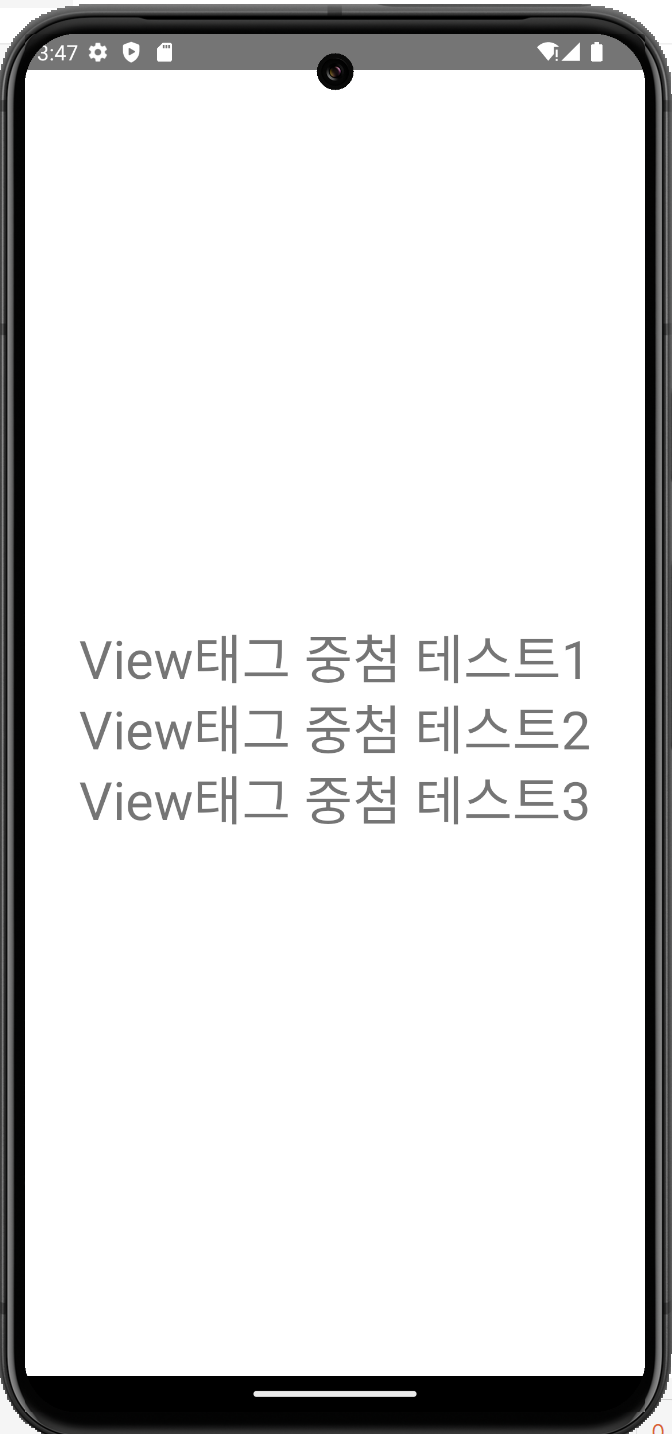 <Text style={styles.text}> View태그 중첨 테스트1 </Text>